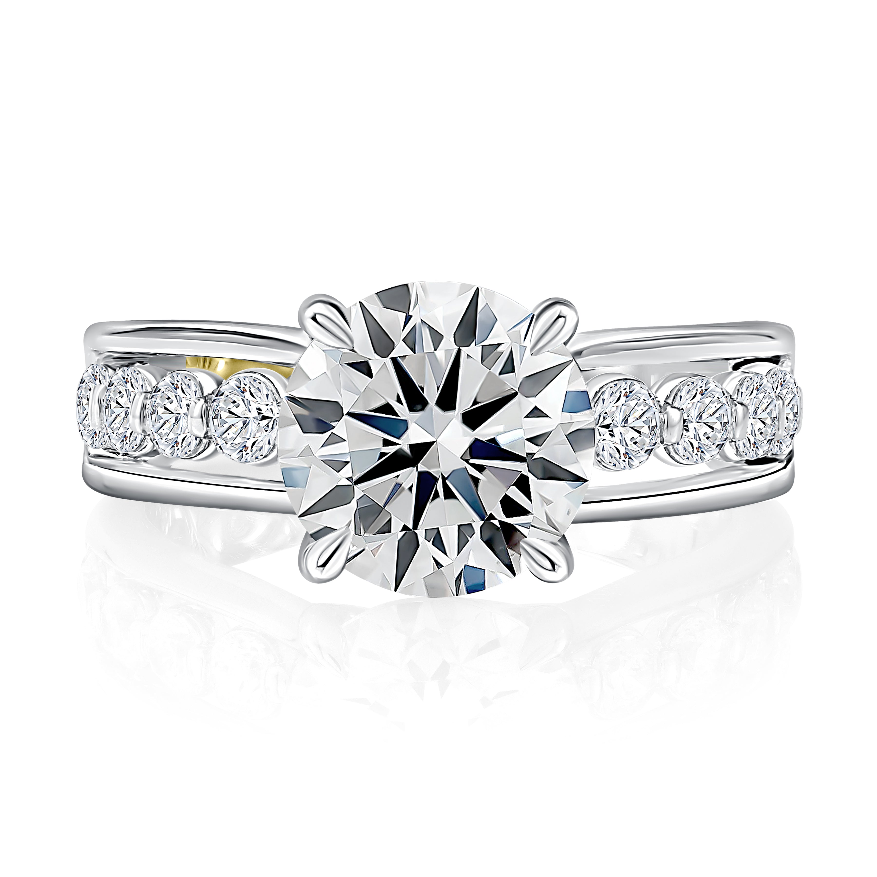 Round Center Diamond Engagement Ring with Channel Set Diamonds and Quilts® Interior