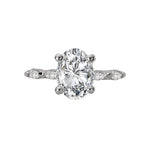 - Center Stone: Not included — designed to hold a 9.5 x 7.5mm oval-shaped diamond