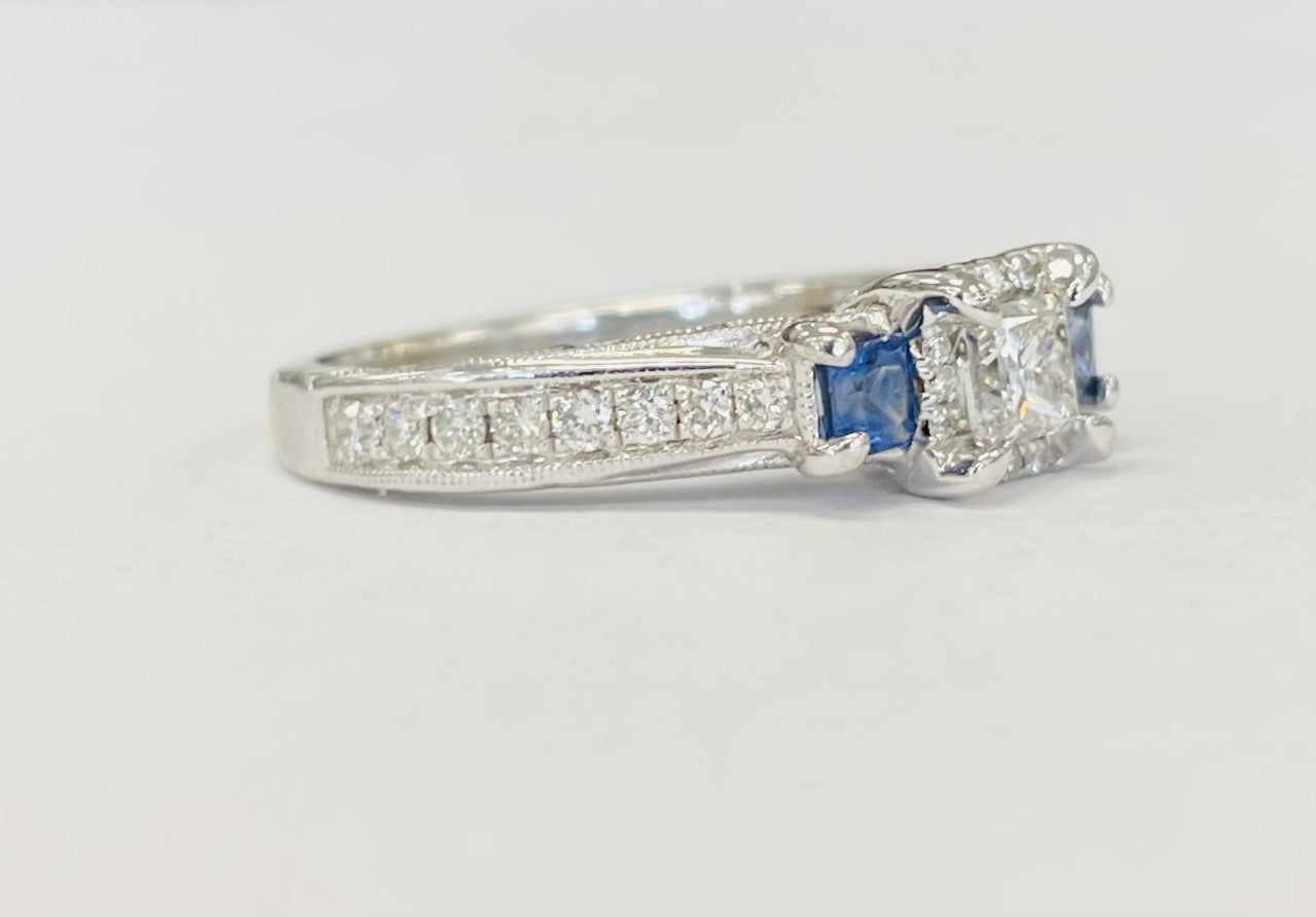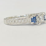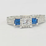 Three Stone Diamond Engagement Ring W/ Sapphires 1CTW