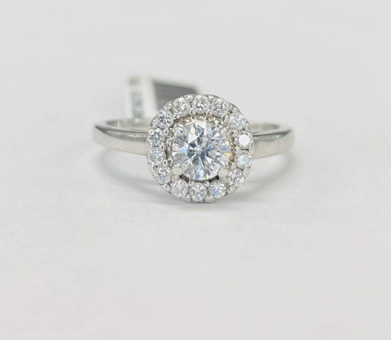 Simple but bold! This Tolkowsky engagement ring features IGI certified round brilliant diamond in the center and a halo to compliment it. Made with the utmost percision the excellent cut and finish of a tolkowsky ideal cut diamond is truly something to be seen.