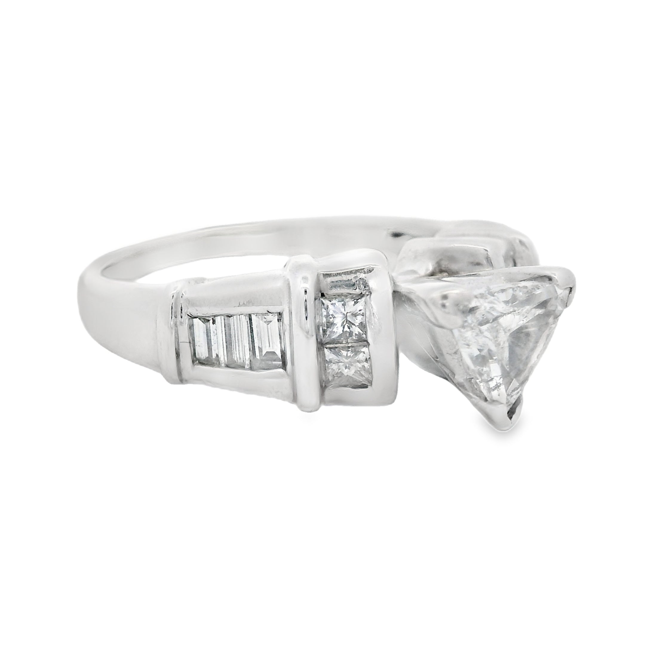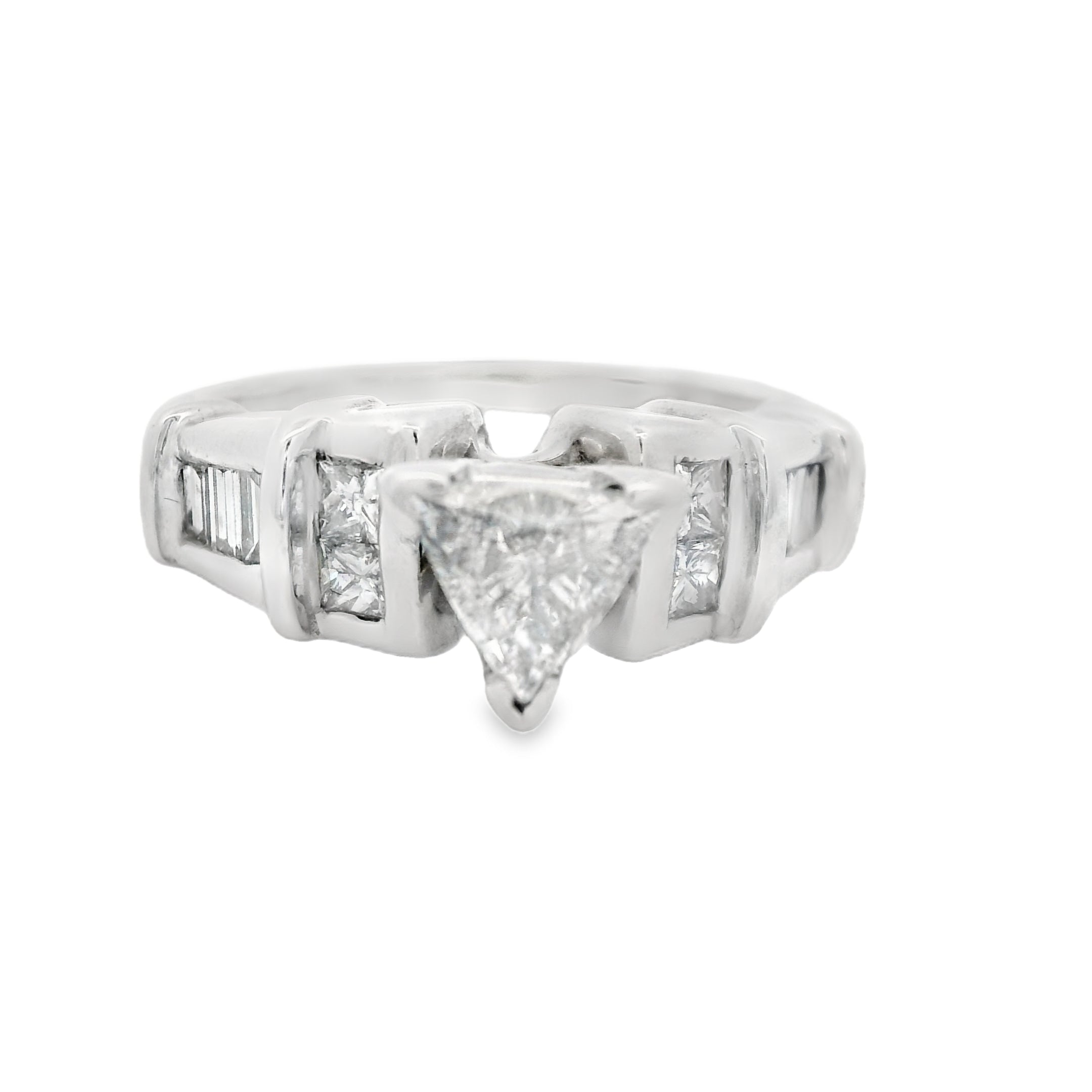Discover the allure of this stunning trillian diamond ring, designed to captivate and impress. The unique shape of the central diamond is complemented by sparkling baguette-cut stones, creating a harmonious blend of modern elegance and timeless beauty. Perfect for engagements or special occasions, this ring is a statement piece that embodies sophistication.