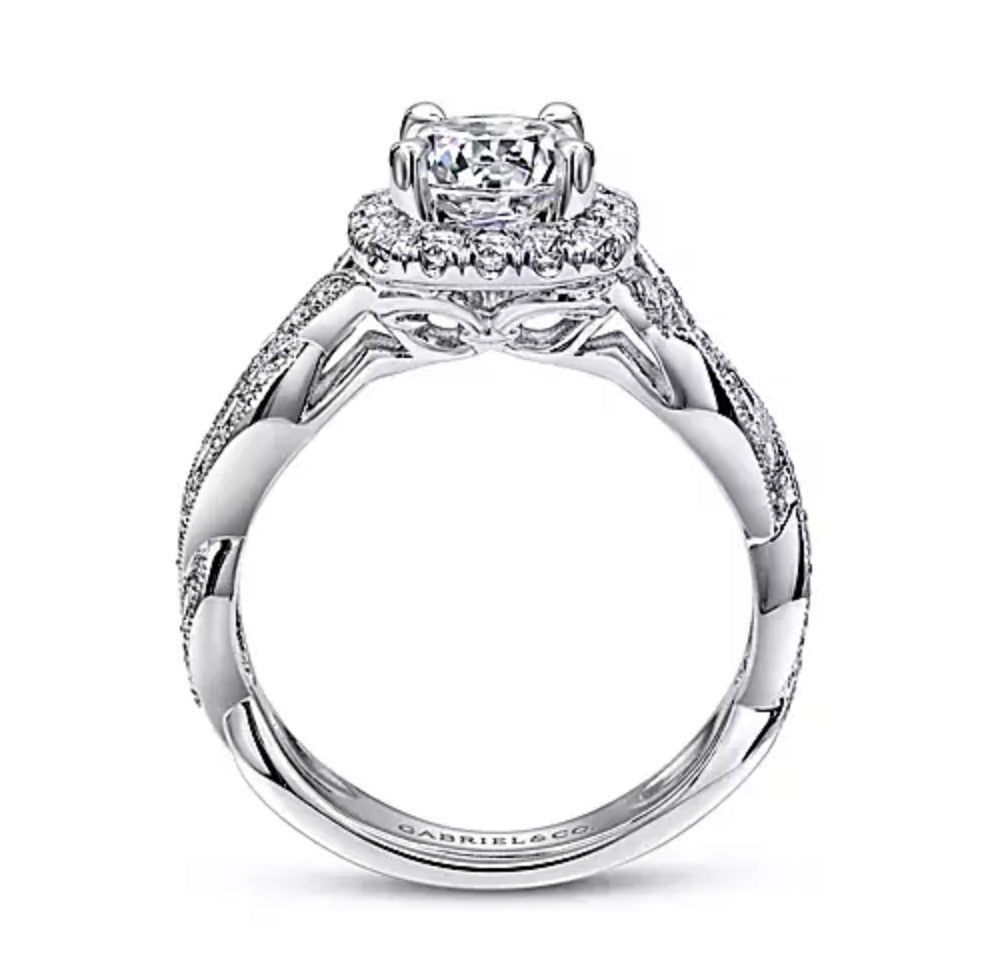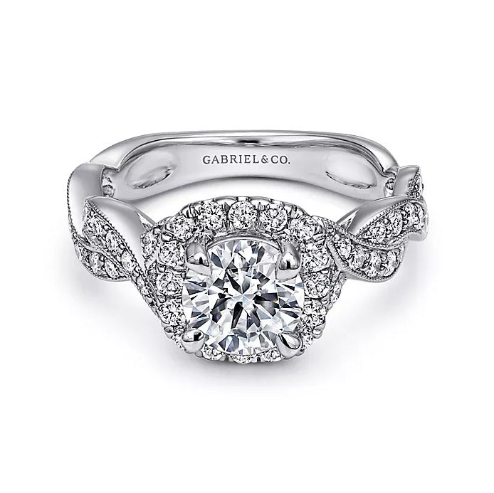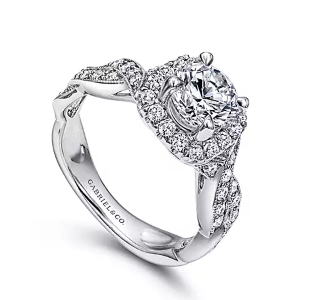 Gabriel & Co. Verona ER10226W44JJ – 14K White Gold Round Halo Diamond Engagement Ring