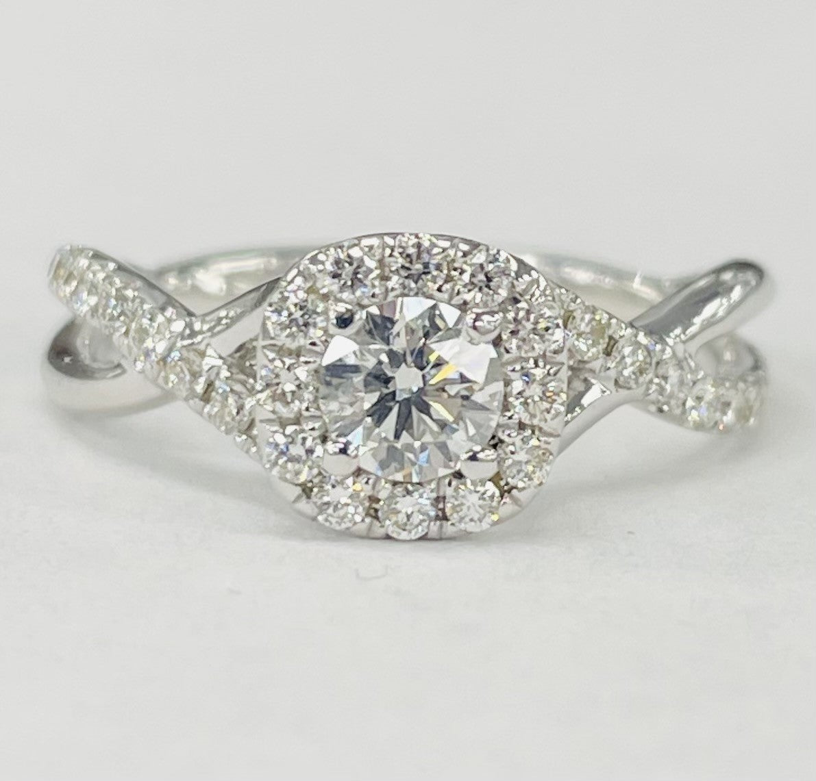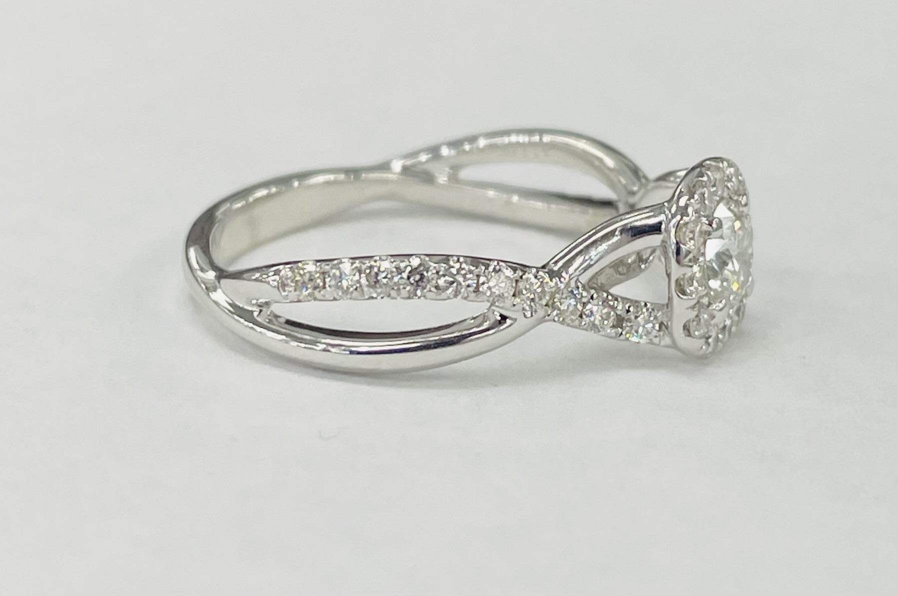 White Gold Halo Twist Shank Diamond Ring