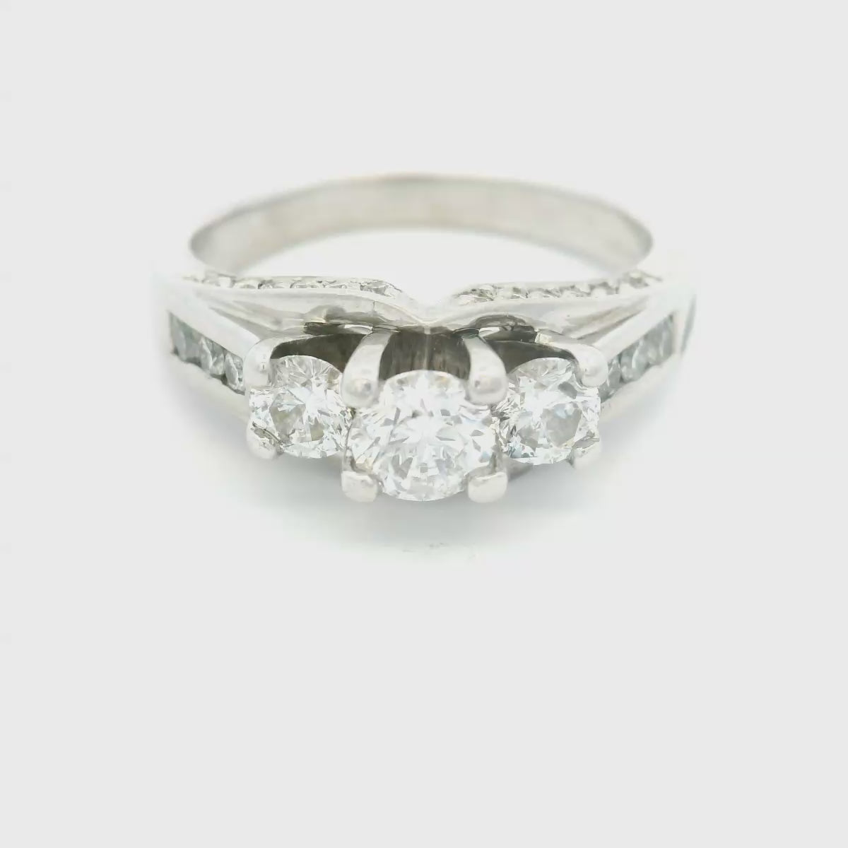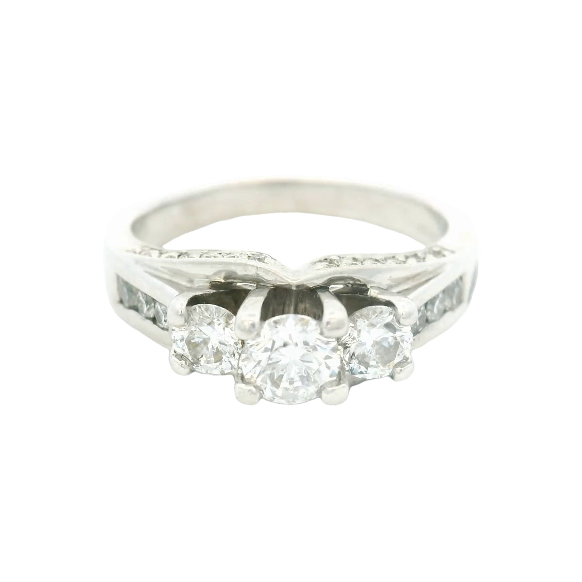 14K White Gold 1ctw Diamond Trio Engagement Ring