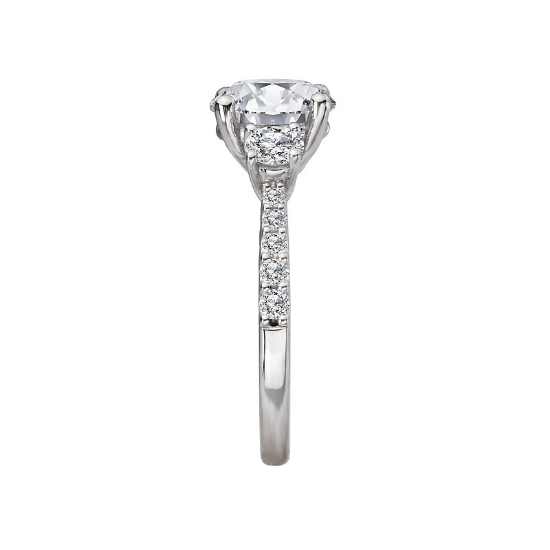 - Setting Style: Prong-set side diamonds with diamond-lined band