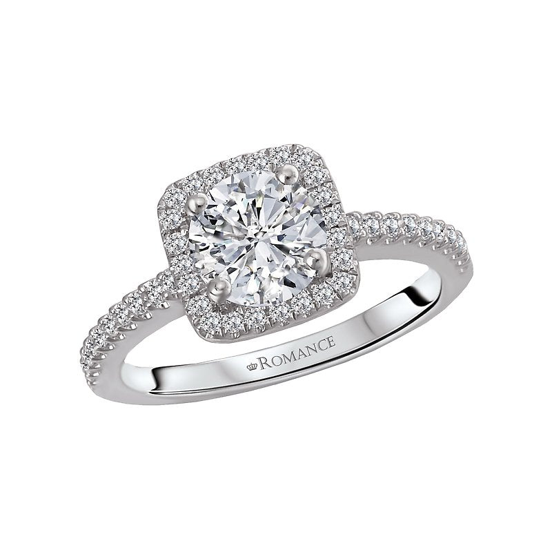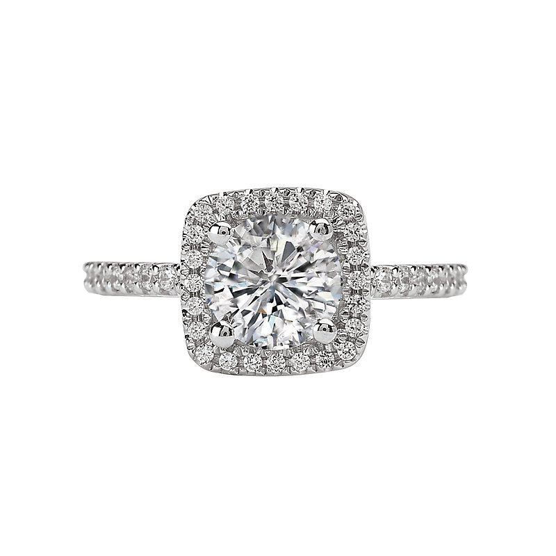 Diamond Ring in 14kt White Gold with a Square Halo. (D 1/4 carat total weight) This item is a SEMI-MOUNT and it comes with NO CENTER STONE as shown but it will accommodate a 6.5mm round center stone.
