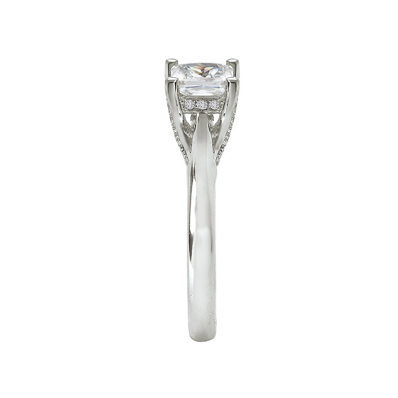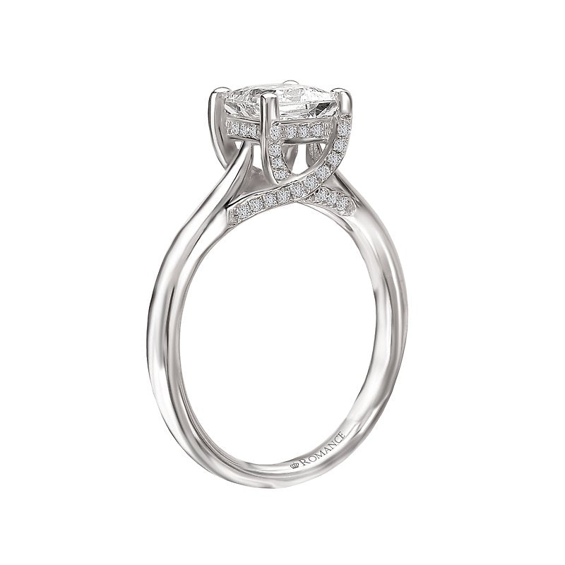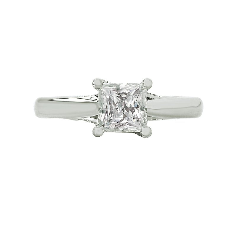 Trellis Diamond Ring in 14kt White Gold. (D 1/7 carat total weight) This item is a SEMI-MOUNT and it comes with NO CENTER STONE as shown but it will accommodate a 5.5-6mm princess cut center stone.