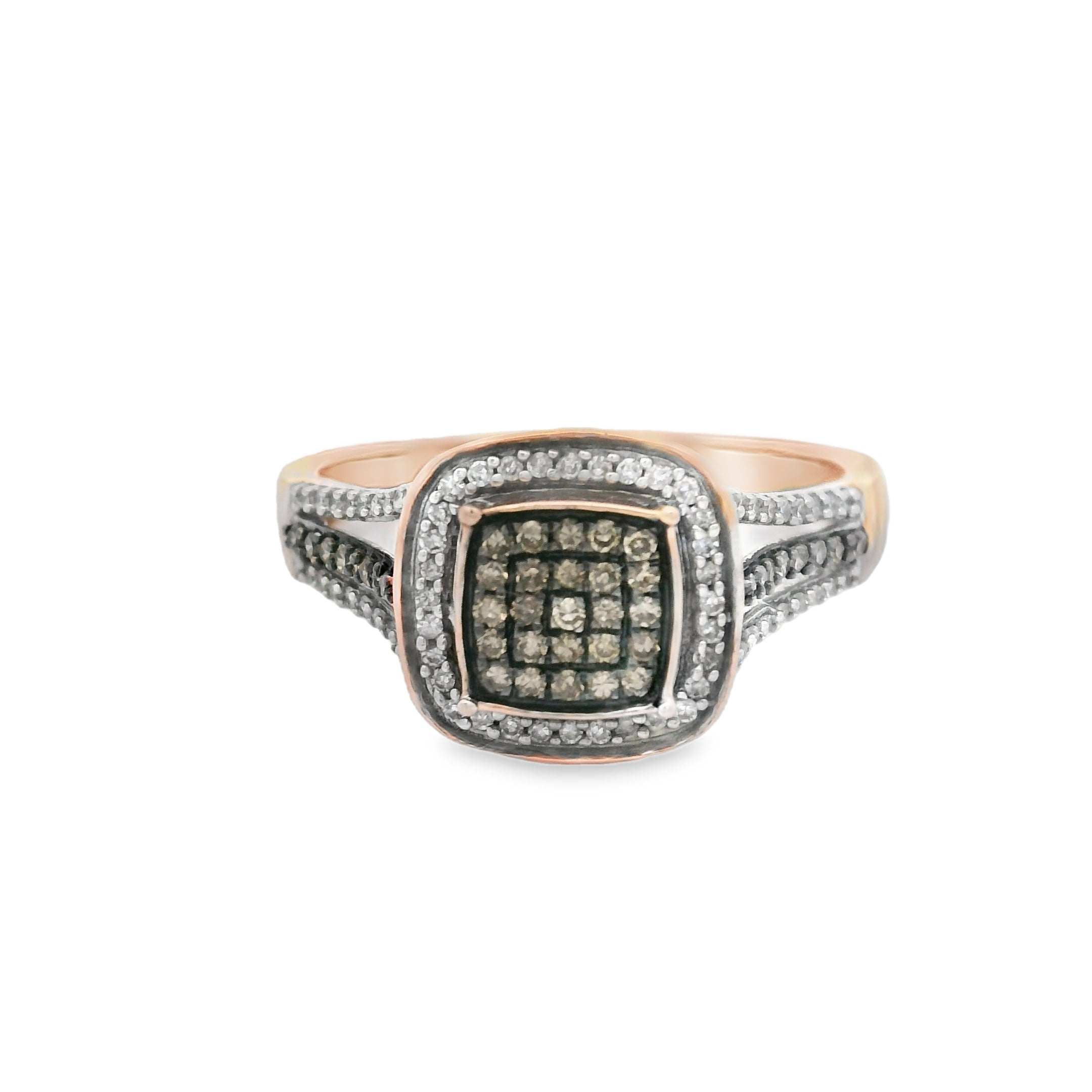 Rose Gold Chocolate And White Diamond Halo Engagement Ring