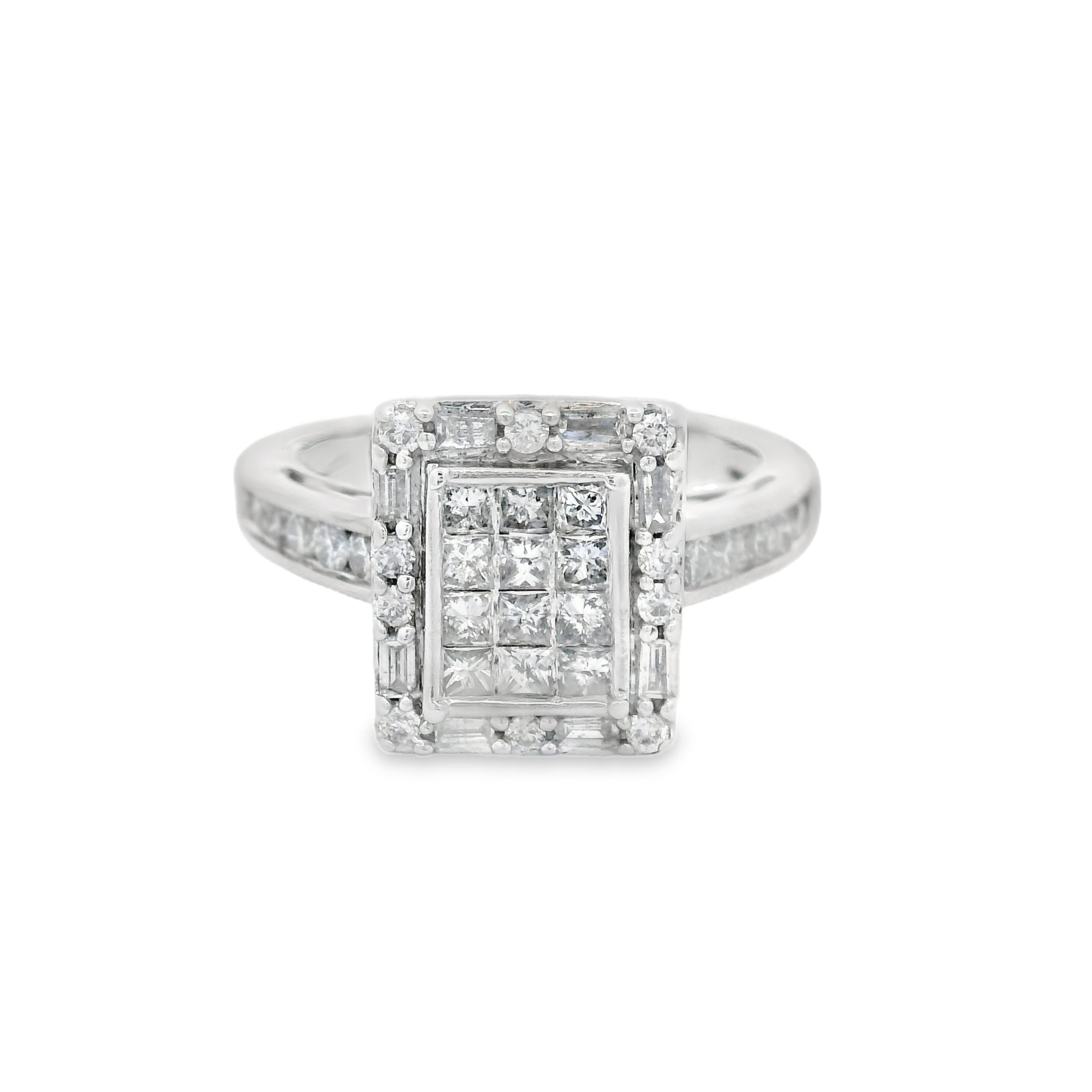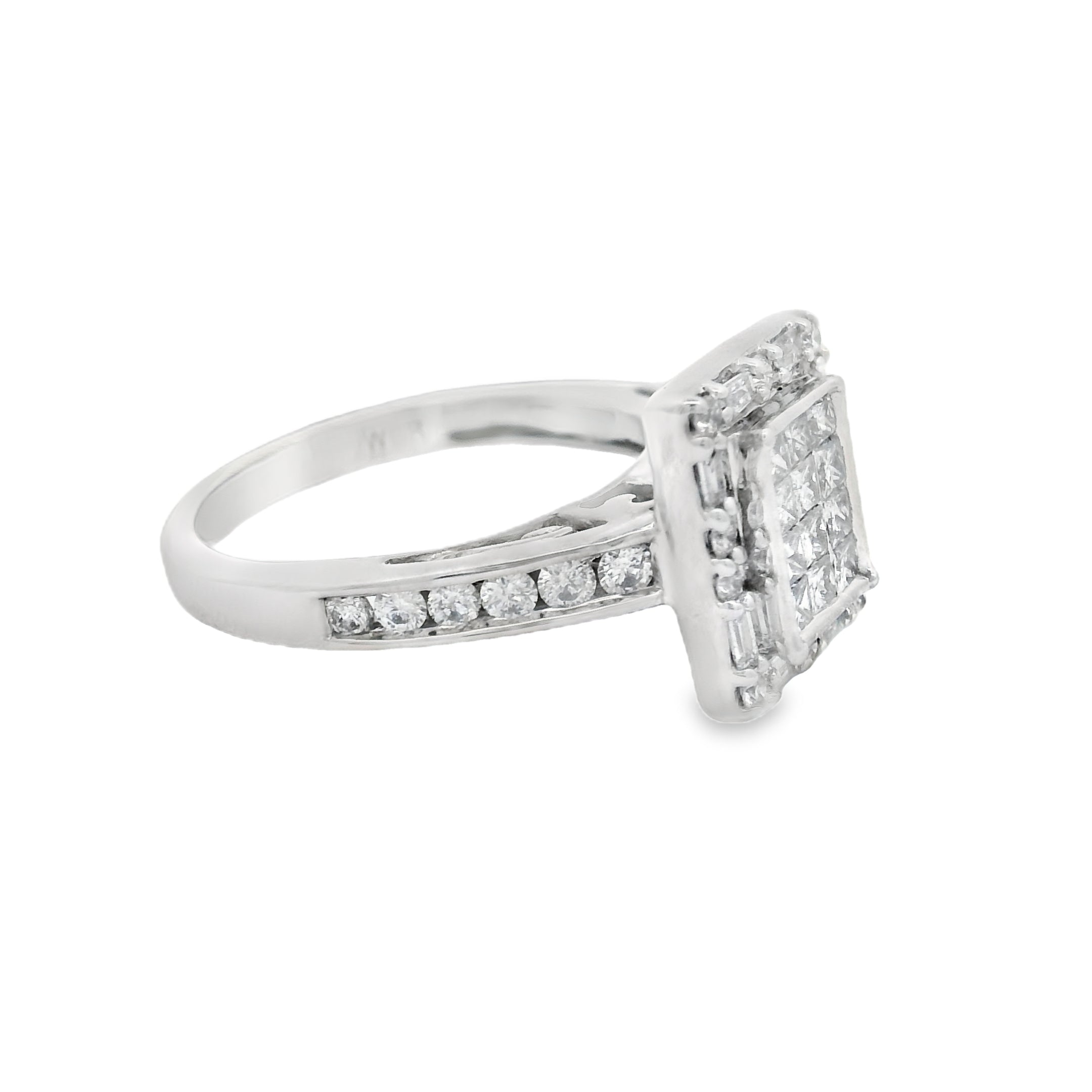 White Gold Invisible Set Diamond Halo Engagement Ring