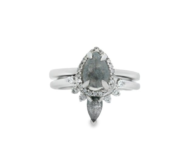 Discover the allure of this stunning salt and pepper diamond ring, featuring a beautifully cut pear at its center. The intricate design is enhanced by sparkling accents, making it a perfect statement piece for any occasion. Elevate your jewelry collection with this exquisite ring that embodies elegance and uniqueness.