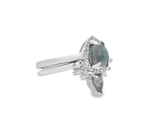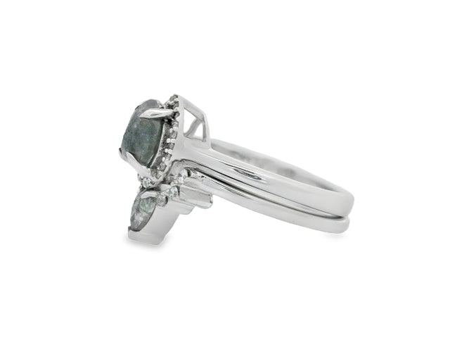 White Gold Salt And Pepper Diamond Halo Wedding Set