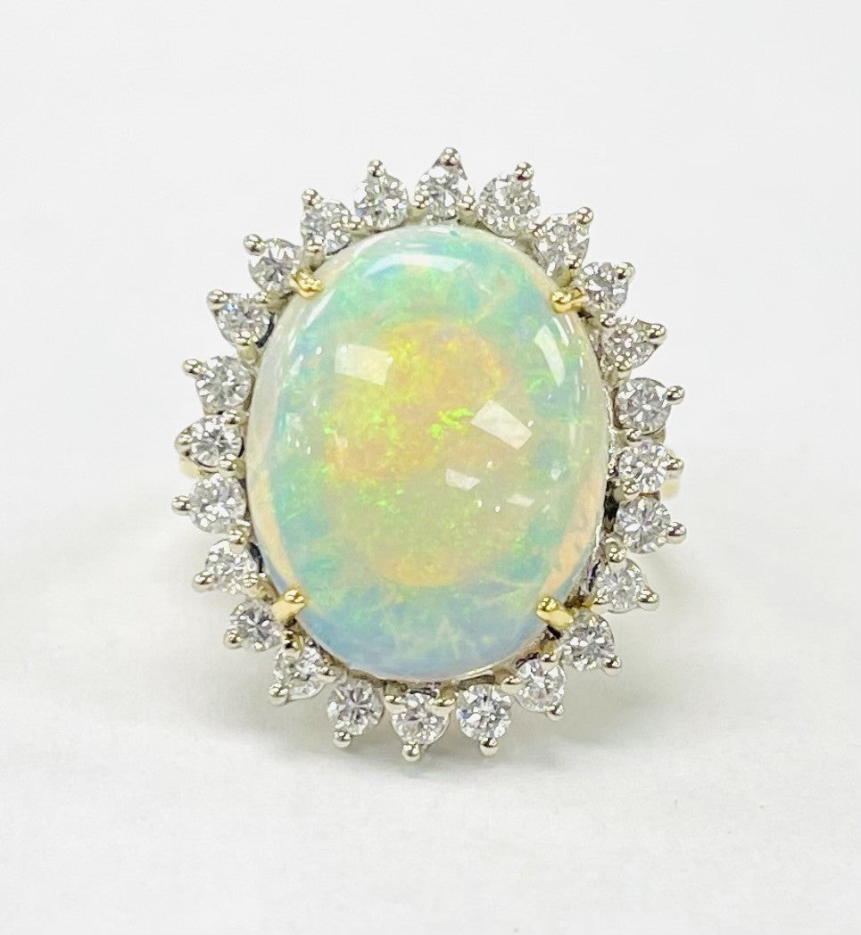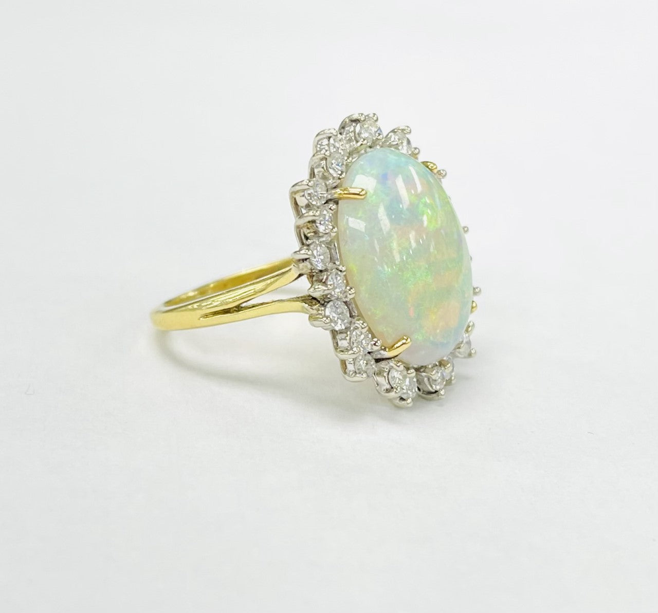 18KT Yellow Gold 4CT Dazzling Opal Halo Diamond Statement Ring