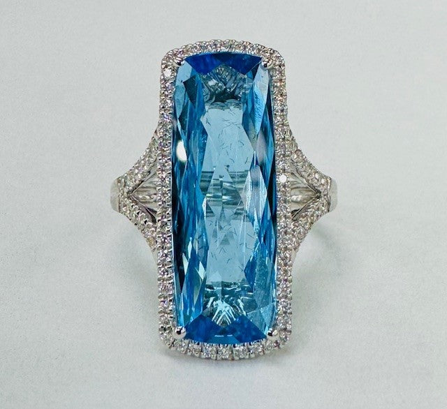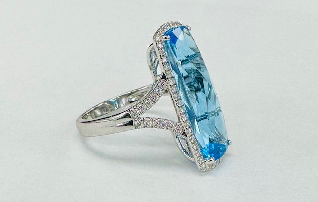 Bellarri - Statement Blue Topaz Diamond Halo Ring
