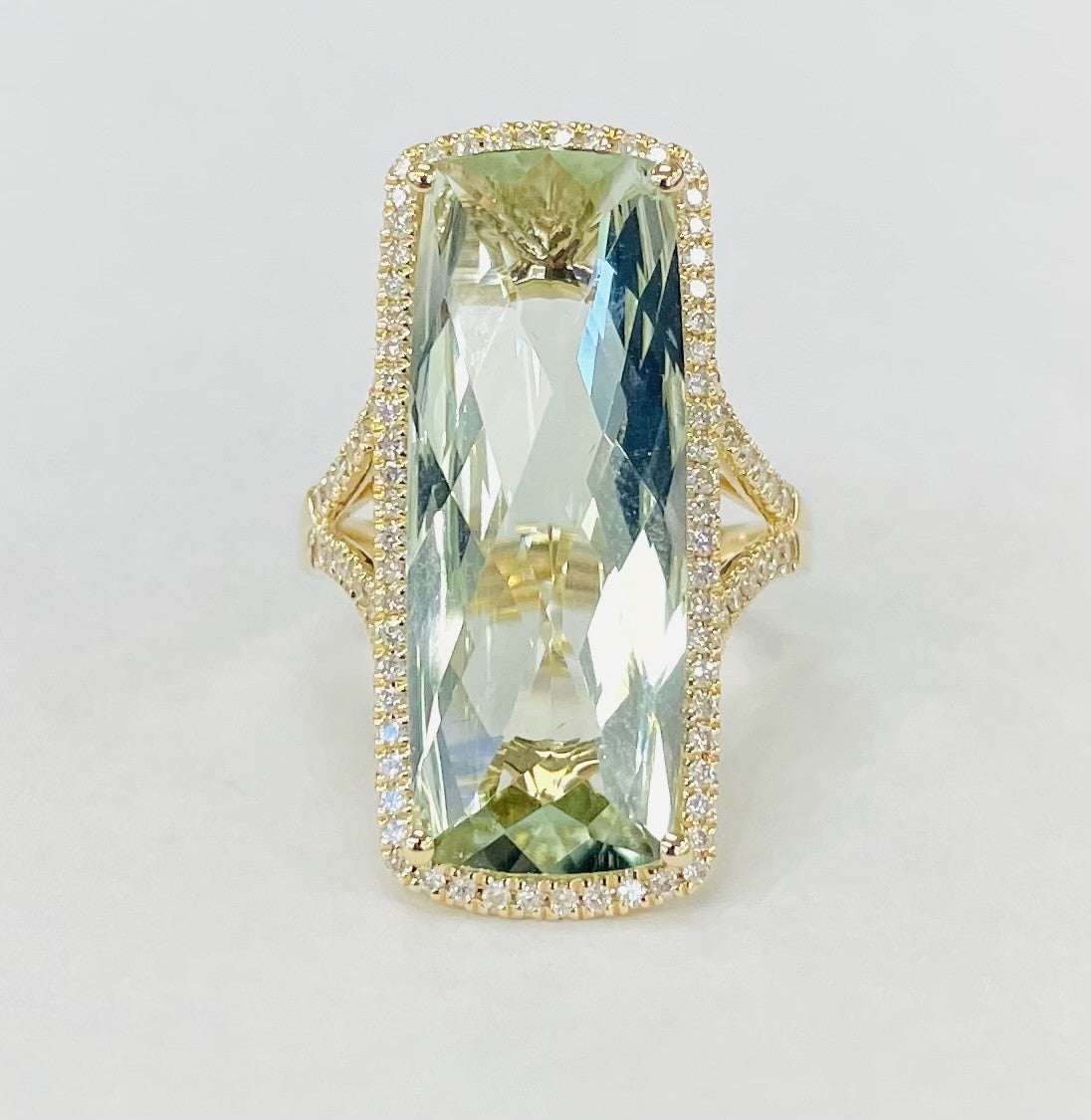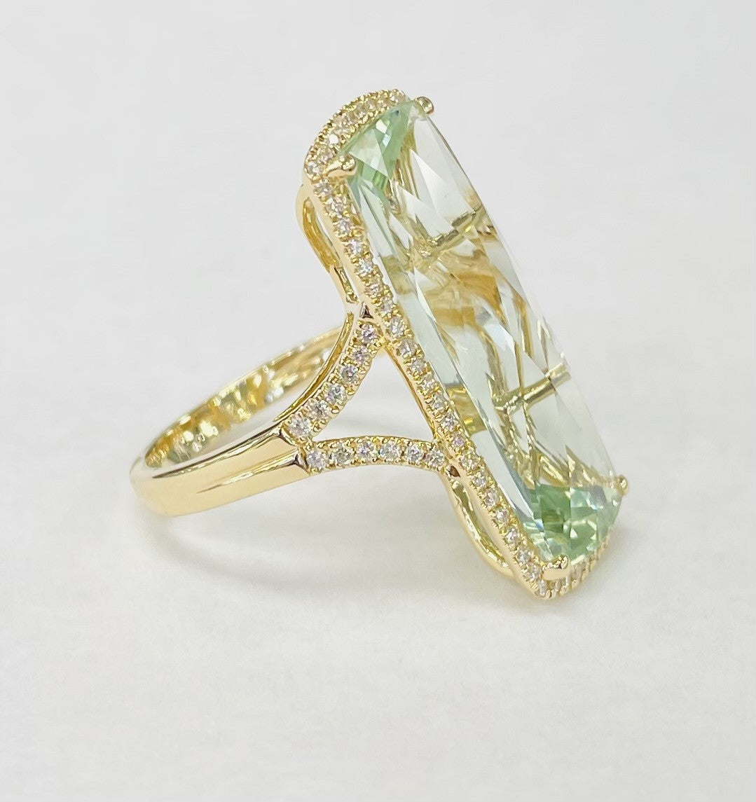 Bellarri - Statement Green Amethyst Diamond Halo Ring