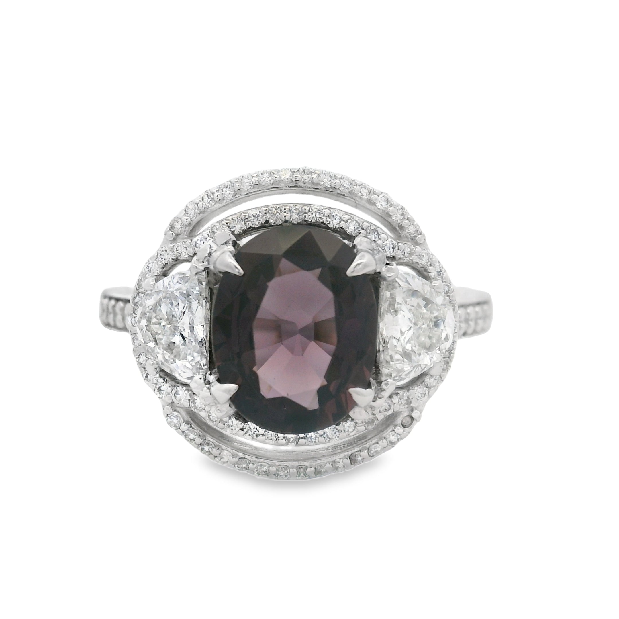Discover the allure of this stunning spinel ring, featuring a captivating central gemstone surrounded by sparkling diamonds. Crafted with precision, this piece is perfect for those who appreciate the finer things in life. Elevate your jewelry collection with this exquisite ring that promises to turn heads.