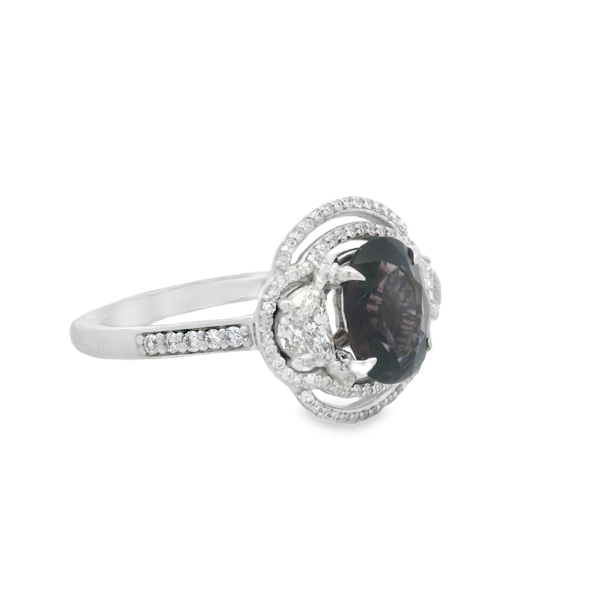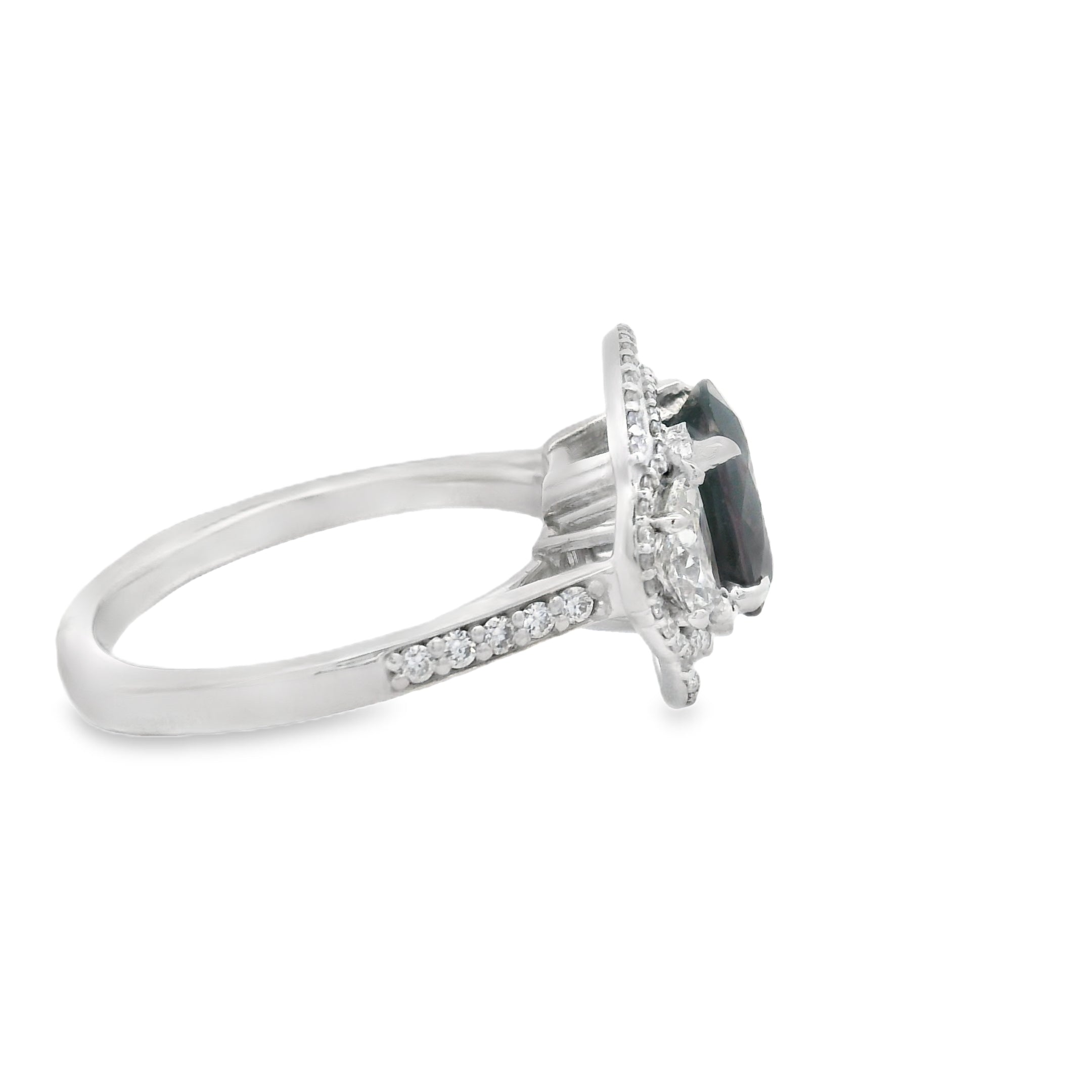 Elegant 18KT White Gold Spinel And Natural Diamond Halo Ring