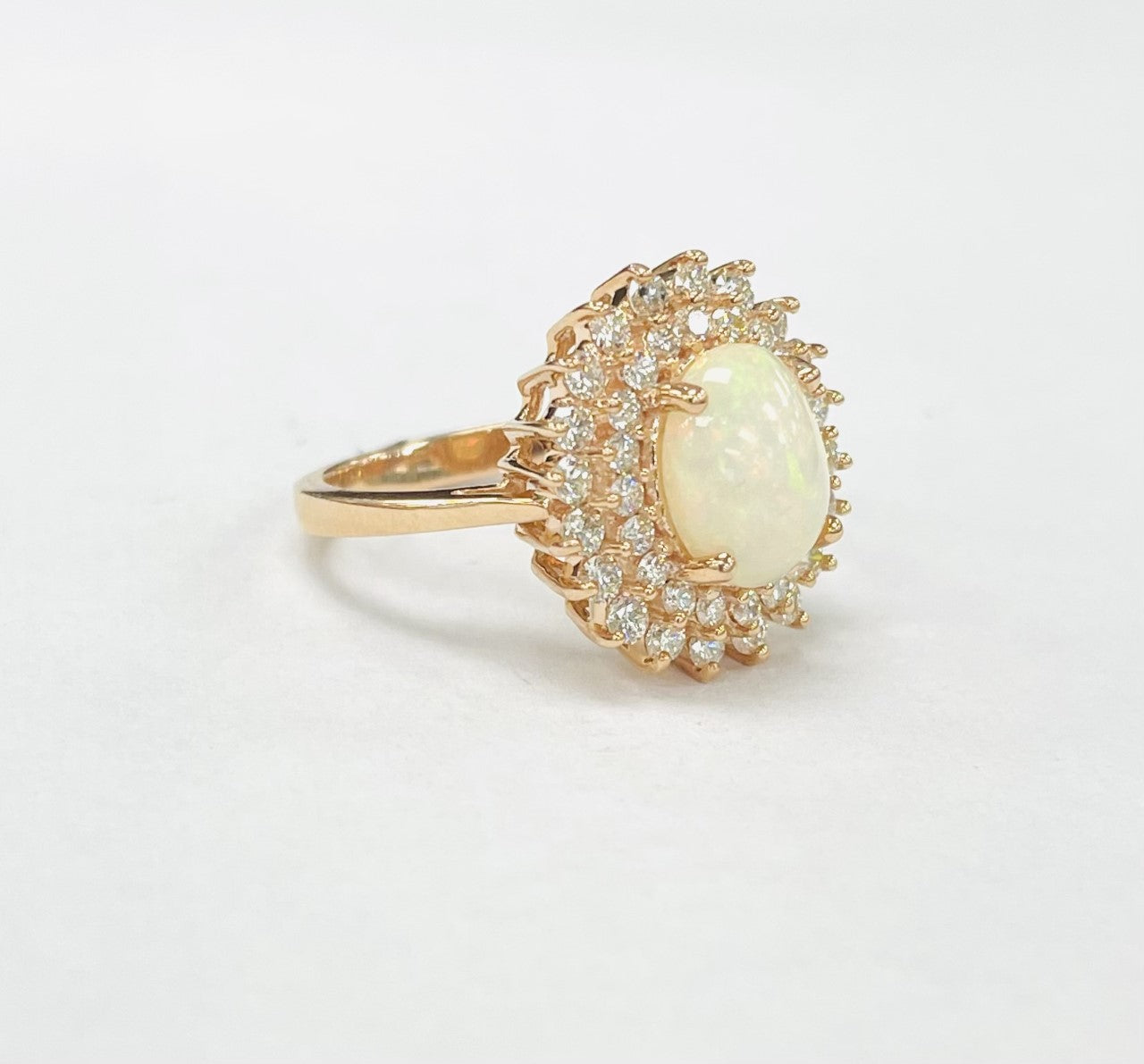Rose Gold Opal Double Halo Diamond Ring
