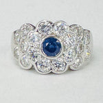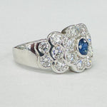 White Gold Royal Blue Sapphire An VS Diamond Statement Estate Ring