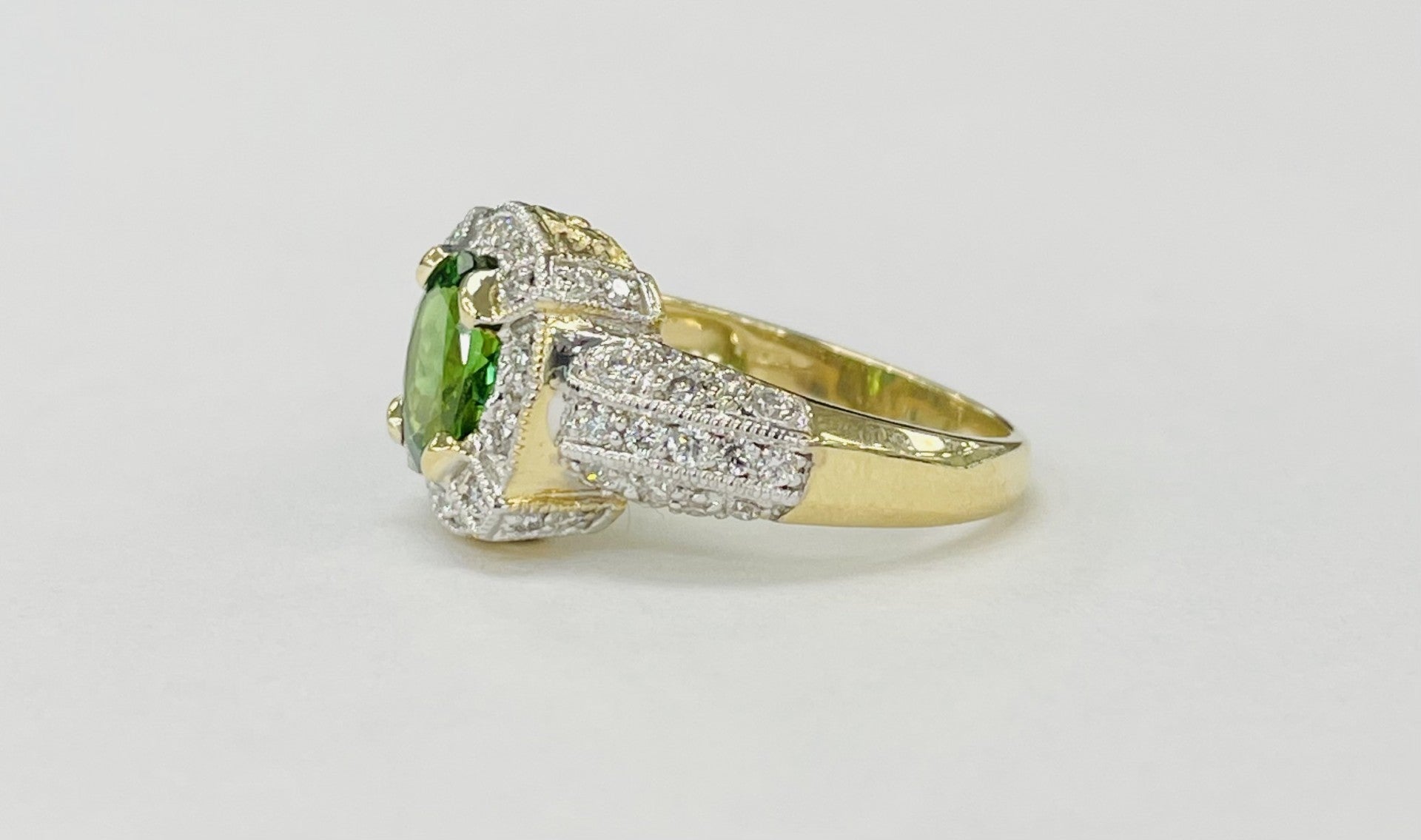 Yellow Gold Vivid Tsavorite Diamond Halo Ring