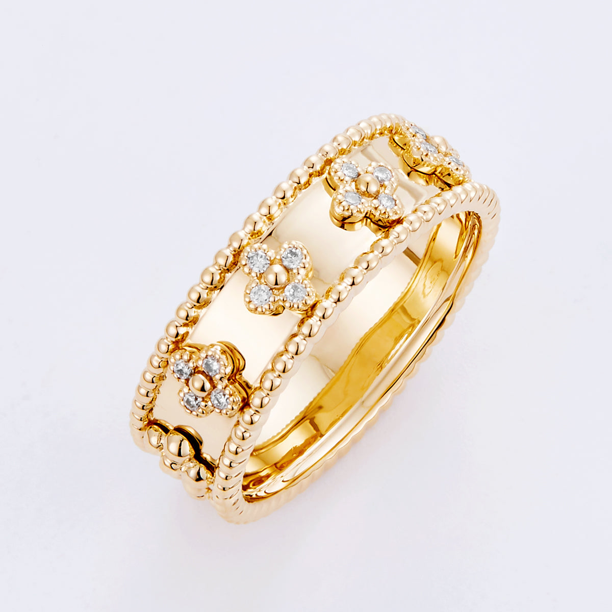 14K Yellow Gold 0.1cttw (SI2 I) Diamond royal clover band