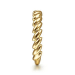 The LR51853Y4JJJ Tilted Leaf Ring by Gabriel & Co. is a nature-inspired piece crafted in radiant 14K yellow gold. Featuring a unique tilted leaf motif, this ring blends organic elegance with contemporary style. Its polished finish enhances the warm glow of the gold, making it a versatile accessory for both everyday wear and special occasions. Designed to be stackable, it pairs beautifully with other bands or shines solo as a minimalist statement.