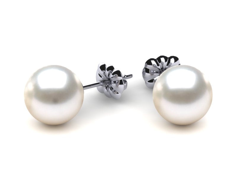 Stunning White Gold Fresh Water Pearl Stud Earrings