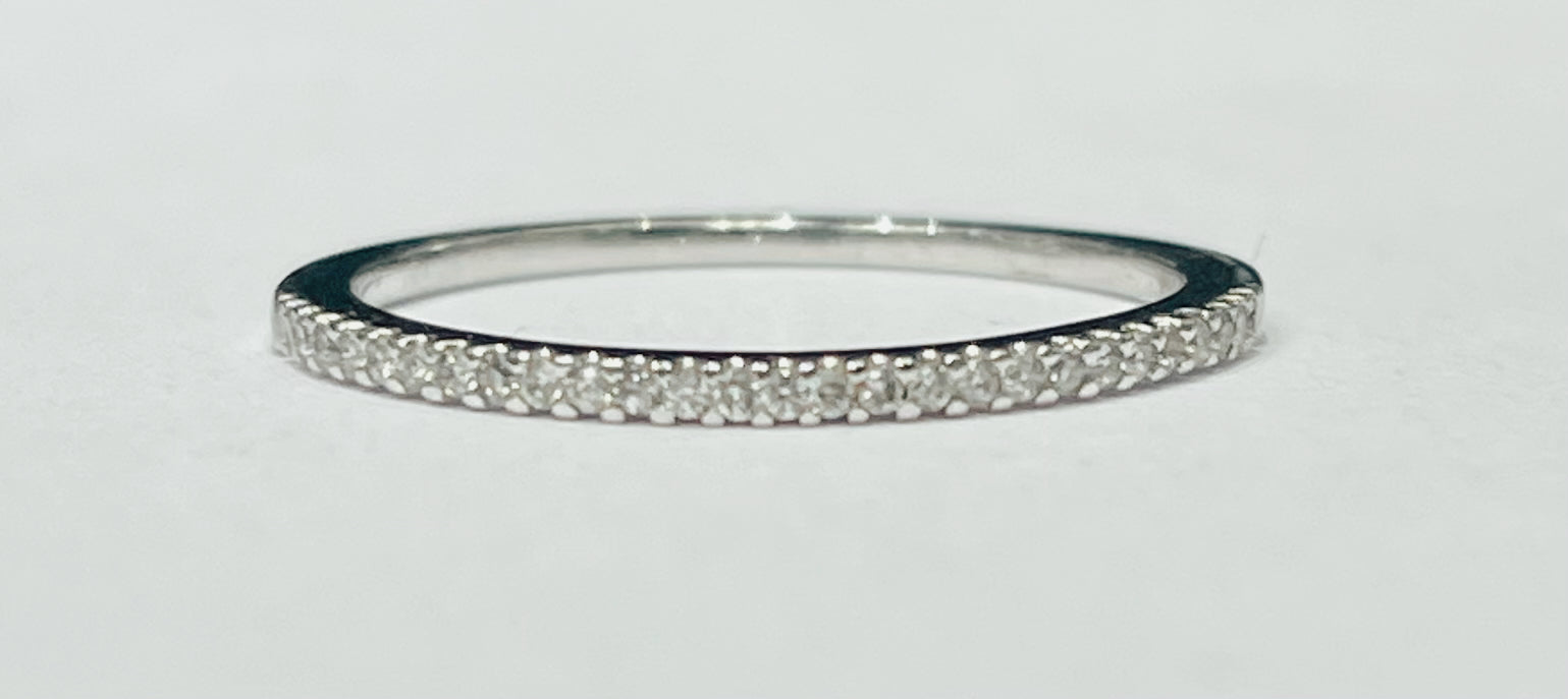 This stunning stackable ring features 10k white gold band with natural diamonds.