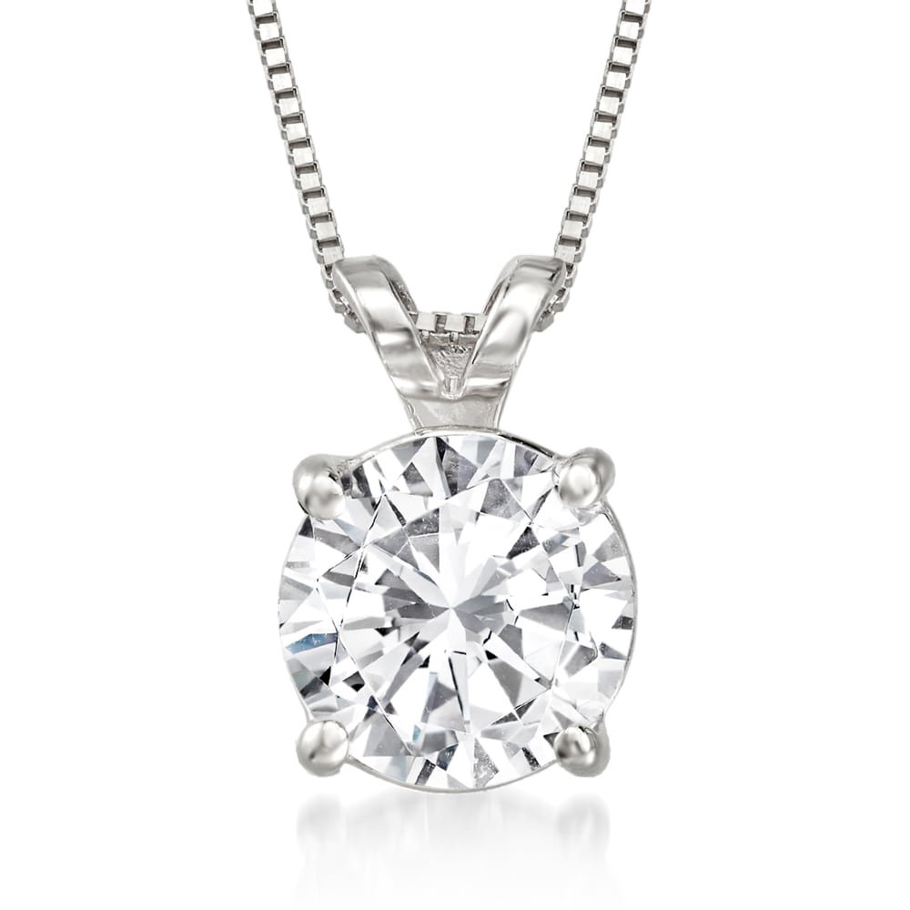 Timeless and classic is the solitare diamond necklace. This beautiful single diamond is set in a white gold four prong basket setting and hanges on a white gold box chain. This truly is the one piece of jewelry that matches not only every outfit but also timeless.