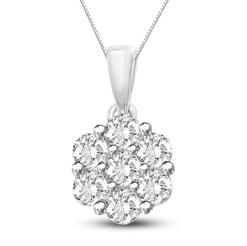 Simple yet stunning, this beautiful necklace features seven diamonds in a shared prong flower style. Made out of white gold to complement the diamonds this is a gift for every ocassion!