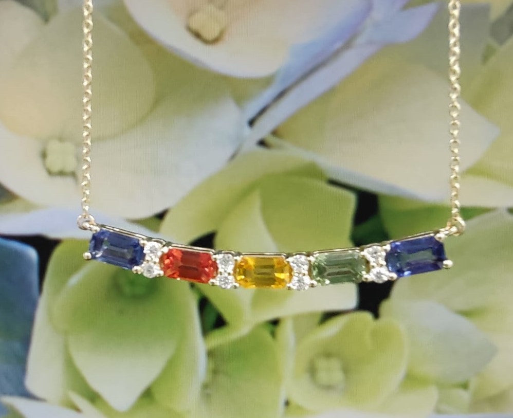 Yellow Gold Rainbow Sapphire An Diamond Necklace
