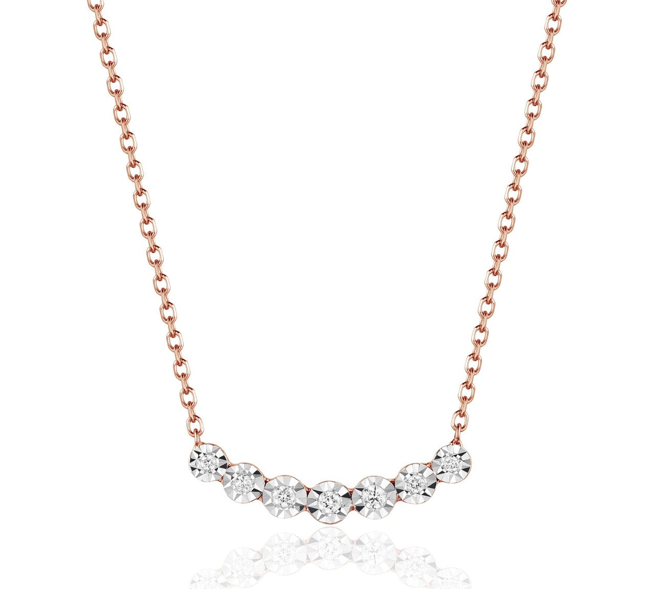 A yellow gold fashion graduated diamond necklace with a chain-link design and multiple graduated diamond pendants.