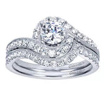 Celebrate timeless elegance with the Gabriel & Co. ER7775W44JJ, a 14K white gold halo engagement ring setting crafted to highlight a 6.5 mm round center diamond (sold separately). This classic semi-mount features 0.25 carats of natural round brilliant diamonds forming a radiant halo and flowing down the shoulders. The polished finish and symmetrical design offer a refined silhouette that enhances brilliance and sparkle—perfect for brides who appreciate traditional beauty with modern craftsmanship.