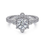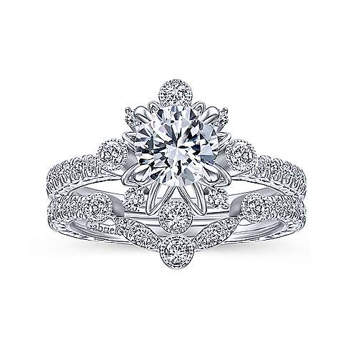 Gabriel & Co. ER14769R3W44JJ Alessia – 14K White Gold Starburst Halo Round Diamond Engagement Ring
