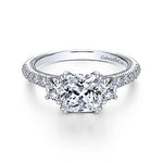 Gabriel & Co. Aloise ER9186W44JJ – 14K White Gold Cushion Cut Three Stone Diamond Engagement Ring