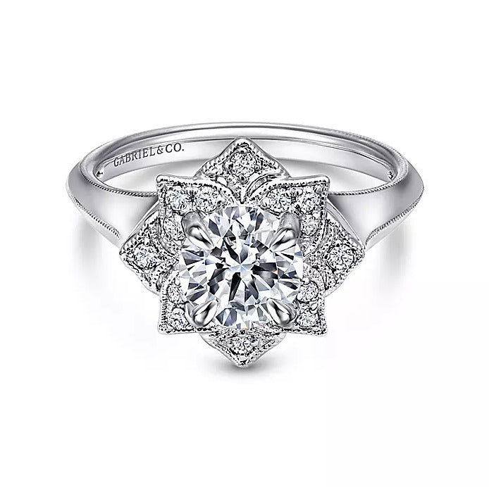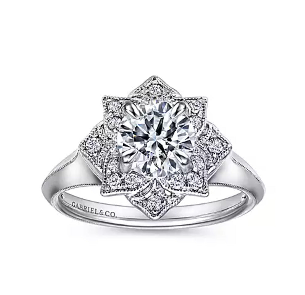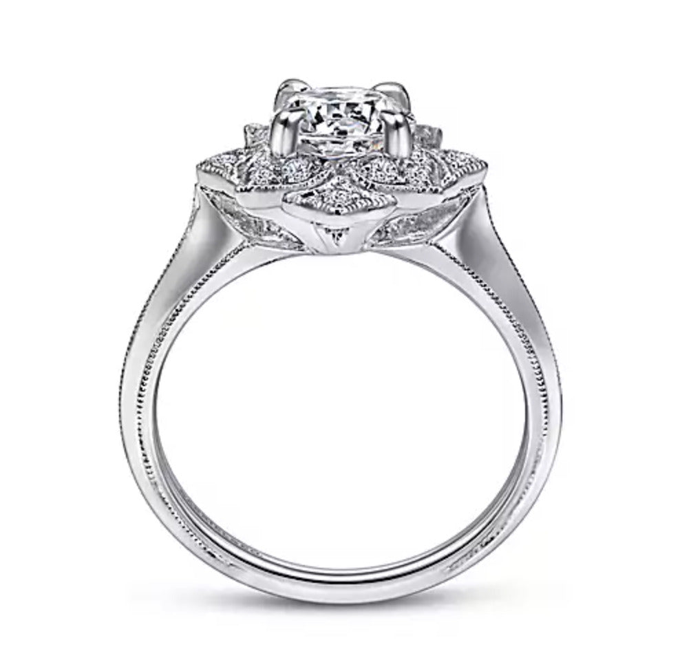 Gabriel & Co. Arlette ER10131W44JJ – Unique 14K White Gold Diamond Halo Engagement Ring