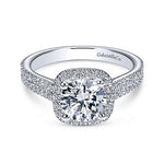 Gabriel & Co. Brianna ER6984W44JJ – 14K White Gold Cushion Halo Round Diamond Engagement Ring