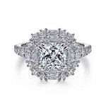 Gabriel & Co. Brocade ER15045C8W44JJ – 14K White Gold Cushion Cut Double Halo Diamond Engagement Ring