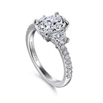 - Style: Three-Stone Engagement Ring Semi-Mount