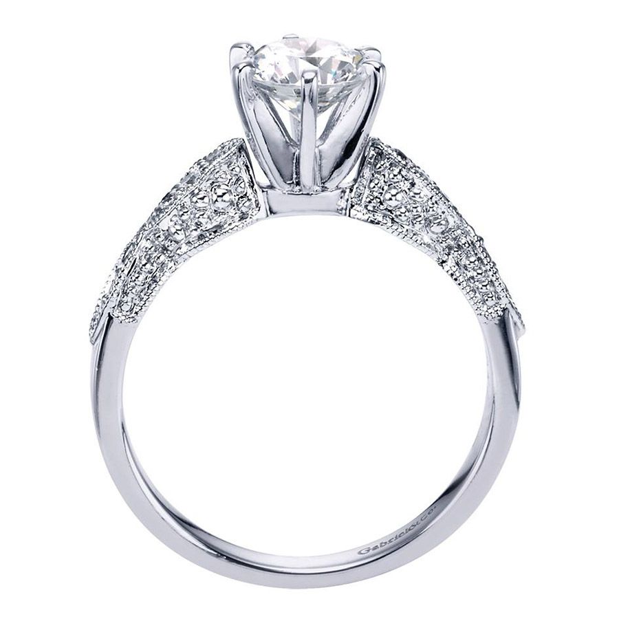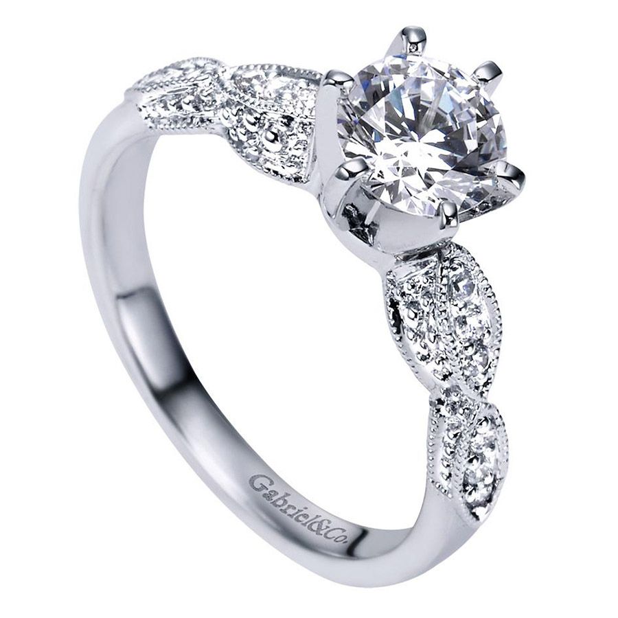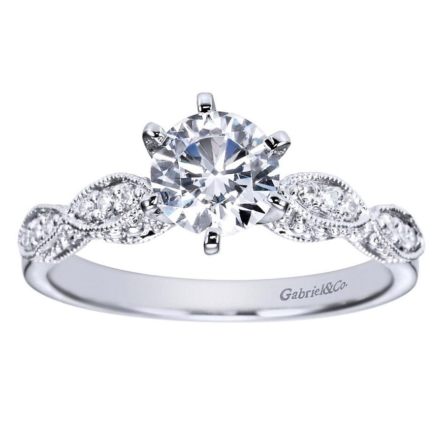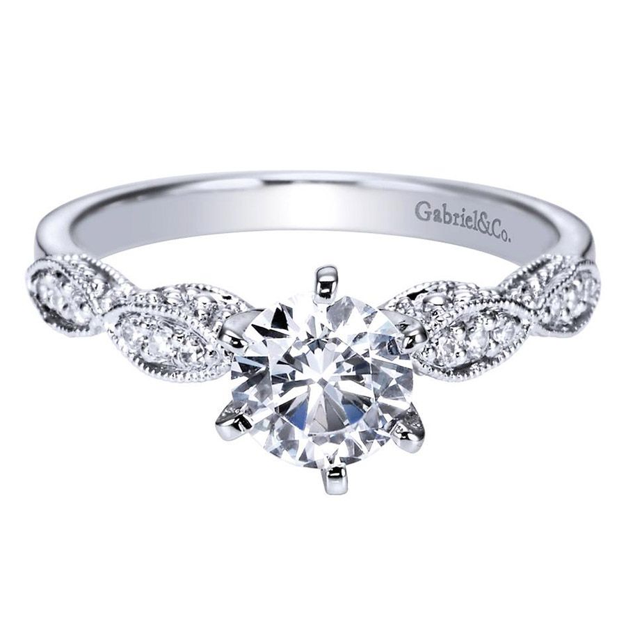 Gabriel & Co. ER3848W44JJ – 14K White Gold Victorian Round Diamond Engagement Ring