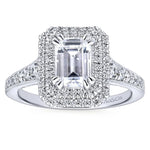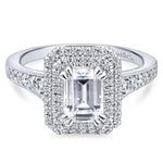 - Name: 14K White Gold Double Halo Emerald Cut Diamond Engagement Ring