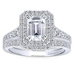 Gabriel & Co. ER12650E4W44JJ – 14K White Gold Double Halo Emerald Cut Diamond Engagement Ring