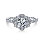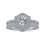 Gabriel & Co. Keltie ER14764R3W44JJ – Vintage Inspired 14K White Gold Round Halo Diamond Engagement Ring