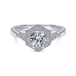 Gabriel & Co. Kiaran ER14761R3W44JJ – Art Deco 14K White Gold Round Halo Diamond Engagement Ring