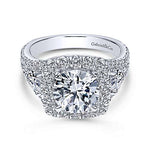 Gabriel & Co. Maia ER8328W44JJ – 14K White Gold Round 3 Stone Halo Diamond Engagement Ring