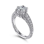 Gabriel & Co. ER15028R6W83JJ Mali – Vintage Inspired 18K White Gold Round Diamond Engagement Ring