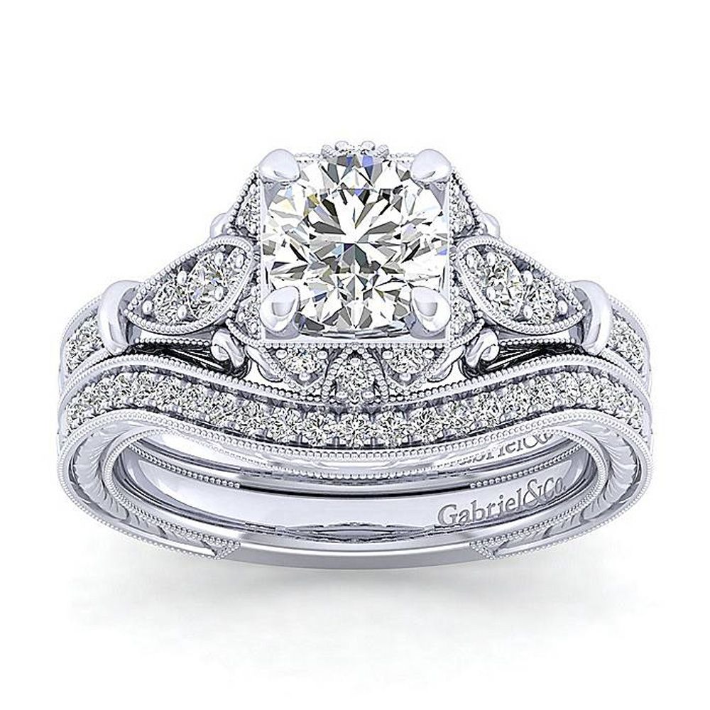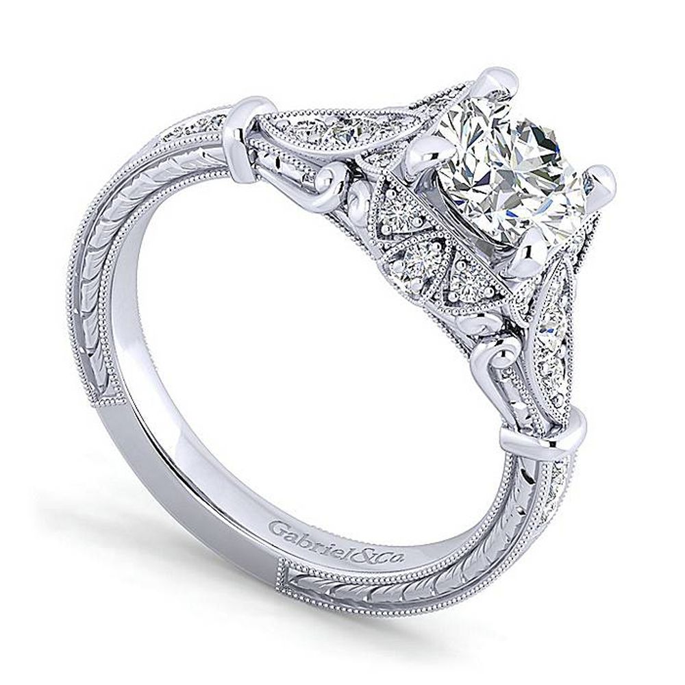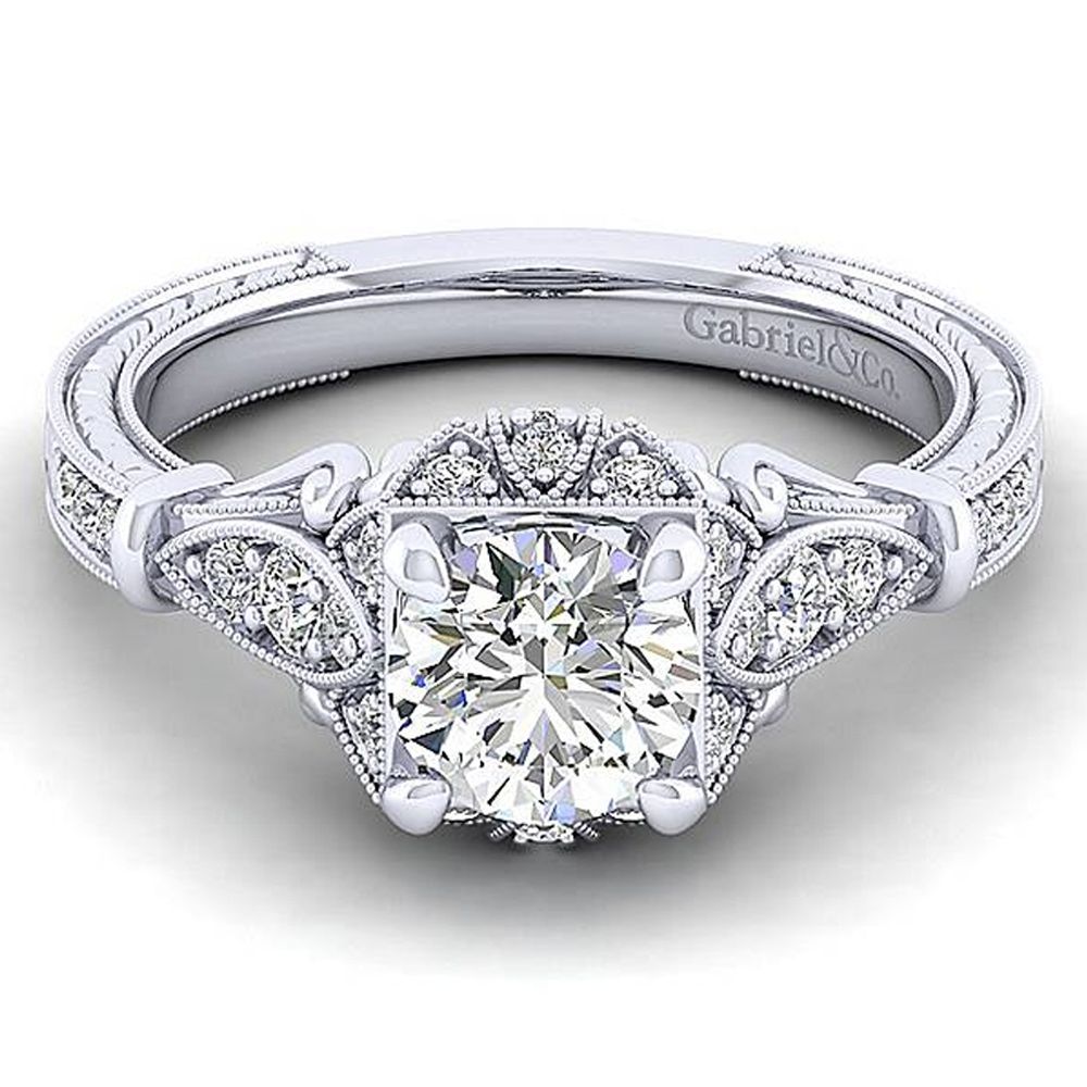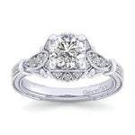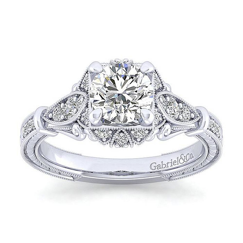Gabriel & Co. Montgomery ER12581R4W44JJ – Unique 14K White Gold Vintage-Inspired Halo Diamond Engagement Ring