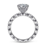 The Gabriel & Co. Piazza Engagement Ring is a vintage-inspired masterpiece in 14K white gold, influenced by Victorian-era artistry. Marquis-shaped diamond stations encompass the shank, while intricate milgrain detailing and an elegantly woven basket cradle your chosen round center stone (sold separately). Brilliant accent diamonds add sparkle across the shank and basket, making this ring a timeless heirloom of romance and sophistication.
