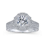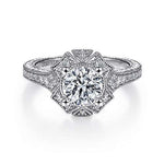 Gabriel & Co. R14444R4W44JJ Providence – Unique 14K White Gold Art Deco Halo Diamond Engagement Ring