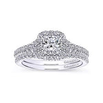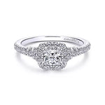 Celebrate your forever moment with the Gabriel & Co. ER10512S0W44JJ, a 14K white gold engagement ring setting designed to showcase a 6.5 mm round center diamond (sold separately). This elegant semi-mount features 0.16 carats of natural round brilliant accent diamonds along the shoulders, adding subtle sparkle and graceful symmetry. With its clean lines, polished finish, and timeless silhouette, this ring is ideal for brides who appreciate understated luxury and classic bridal style.