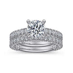 The Gabriel & Co. Silva engagement ring (R15269R4W44JJ) is a refined and elegant design crafted in 14K white gold. Featuring a brilliant round center stone (sold separately), the ring is accented with sparkling diamonds along the band, creating a timeless silhouette. With its graceful proportions and understated luxury, the Silva ring is perfect for brides who appreciate classic beauty with modern craftsmanship.